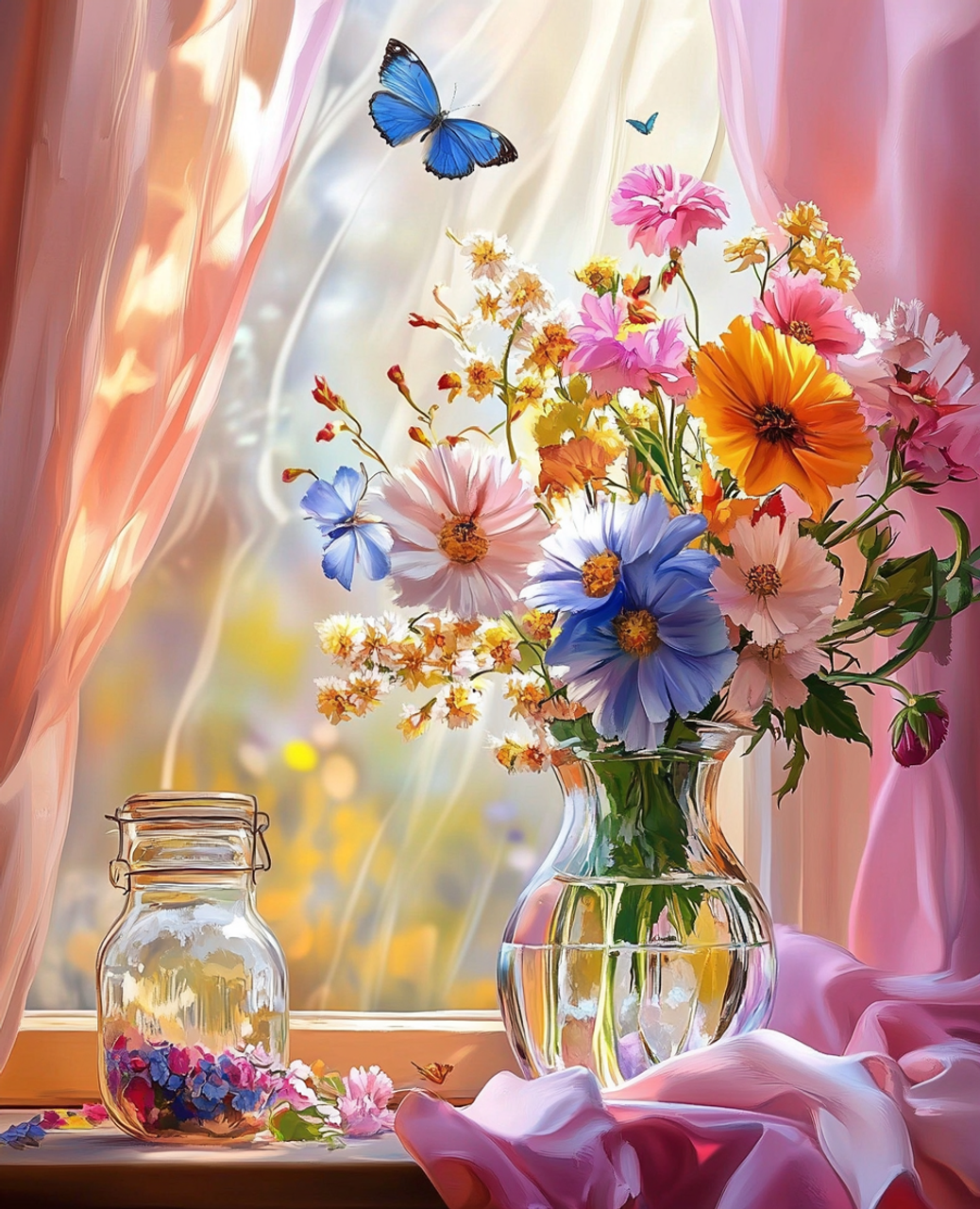5D Diamond Painting - Blumen vor dem Fenster