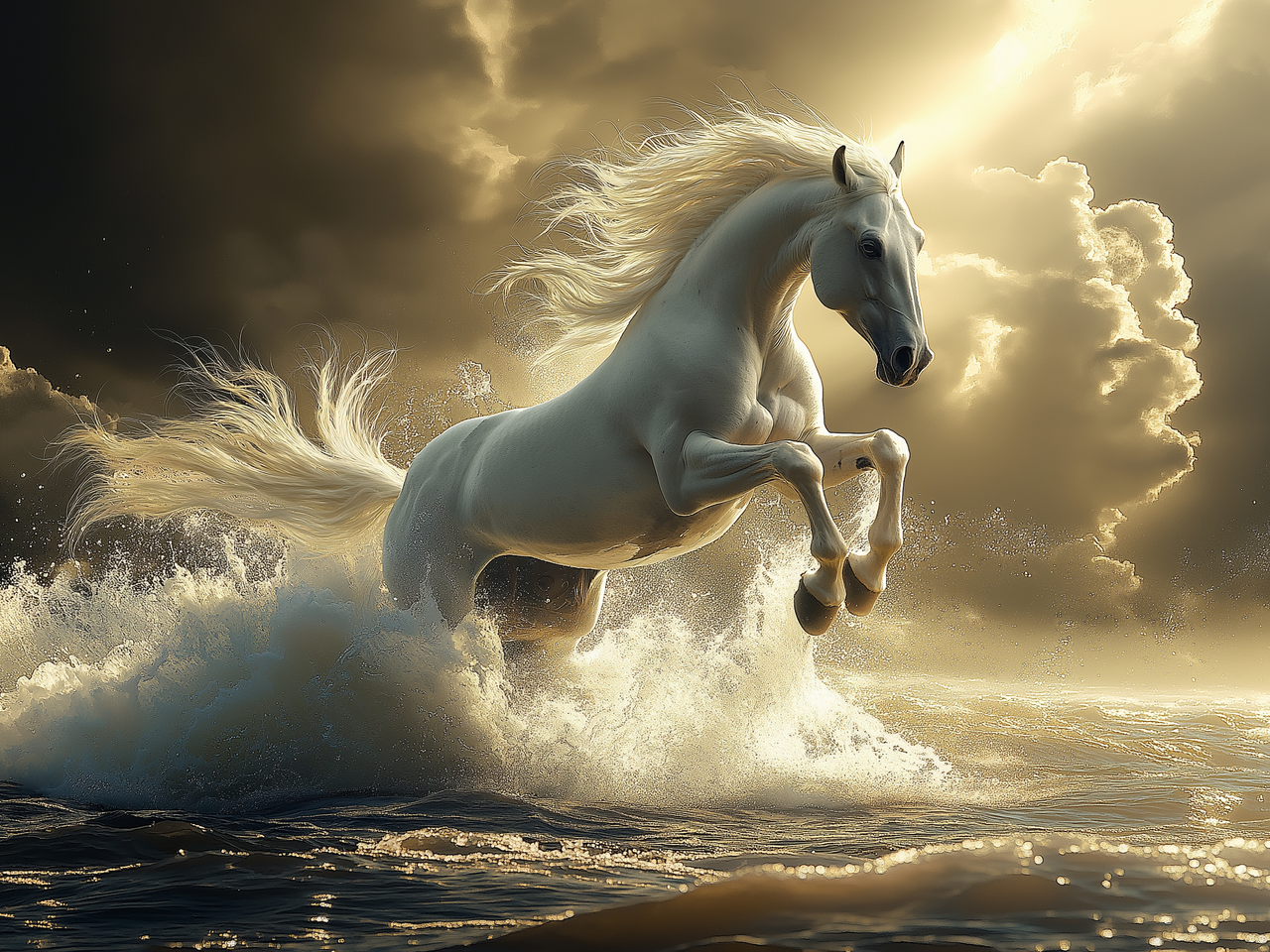 5D Diamond Painting - Das tänzelnde weiße Pferd
