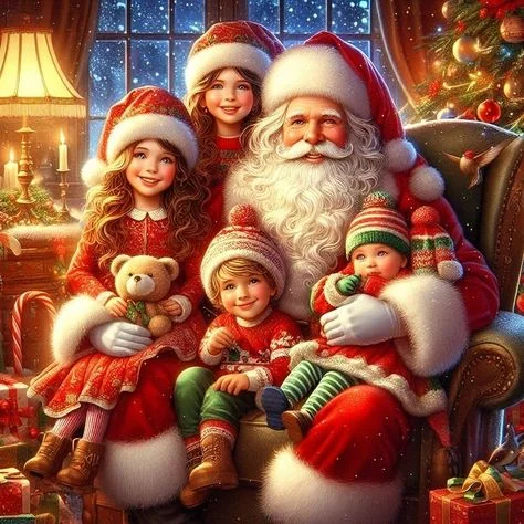 5D Diamond Painting - Weihnachtsmann und Kinder
