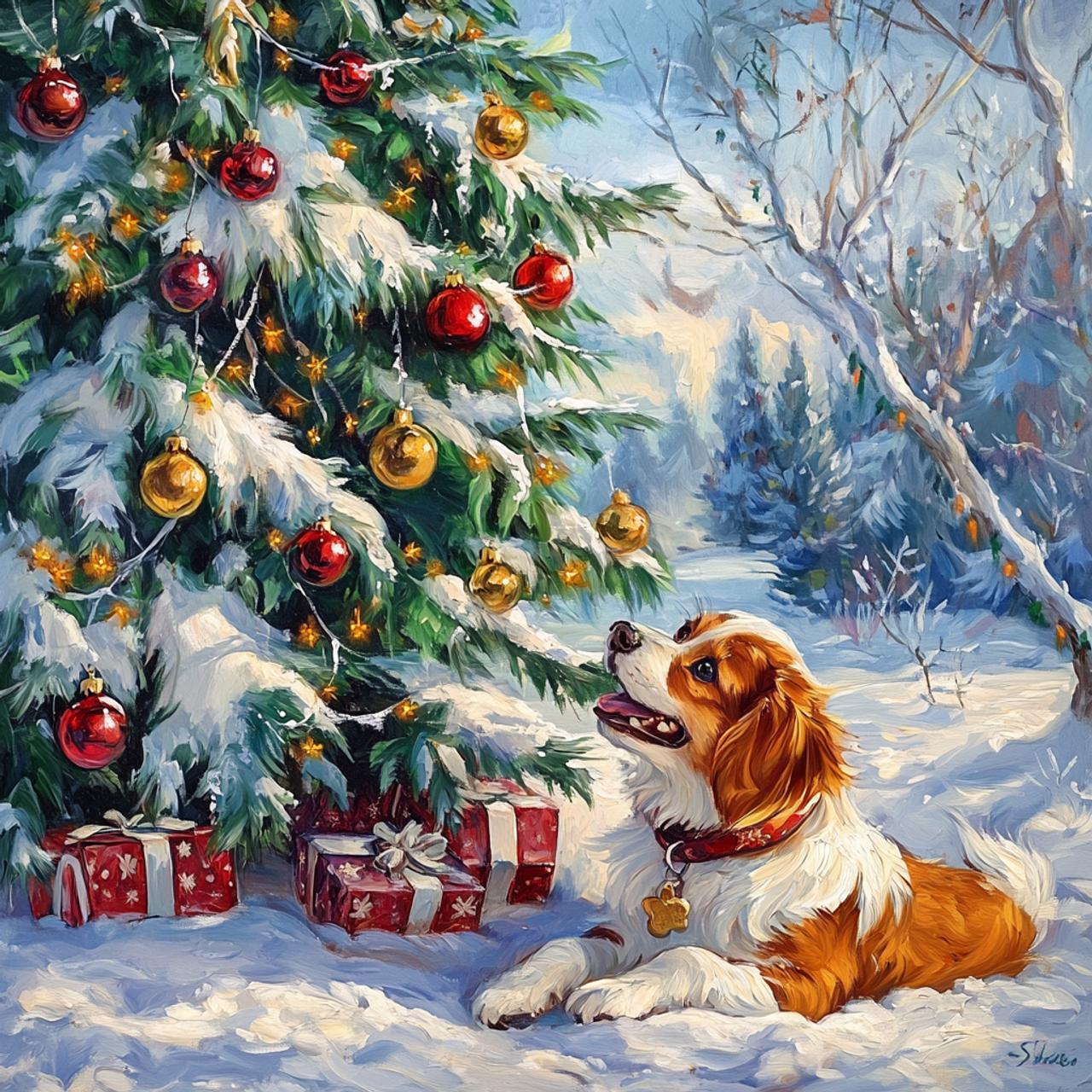 5D Diamond Painting - Welpe und Weihnachtsbaum